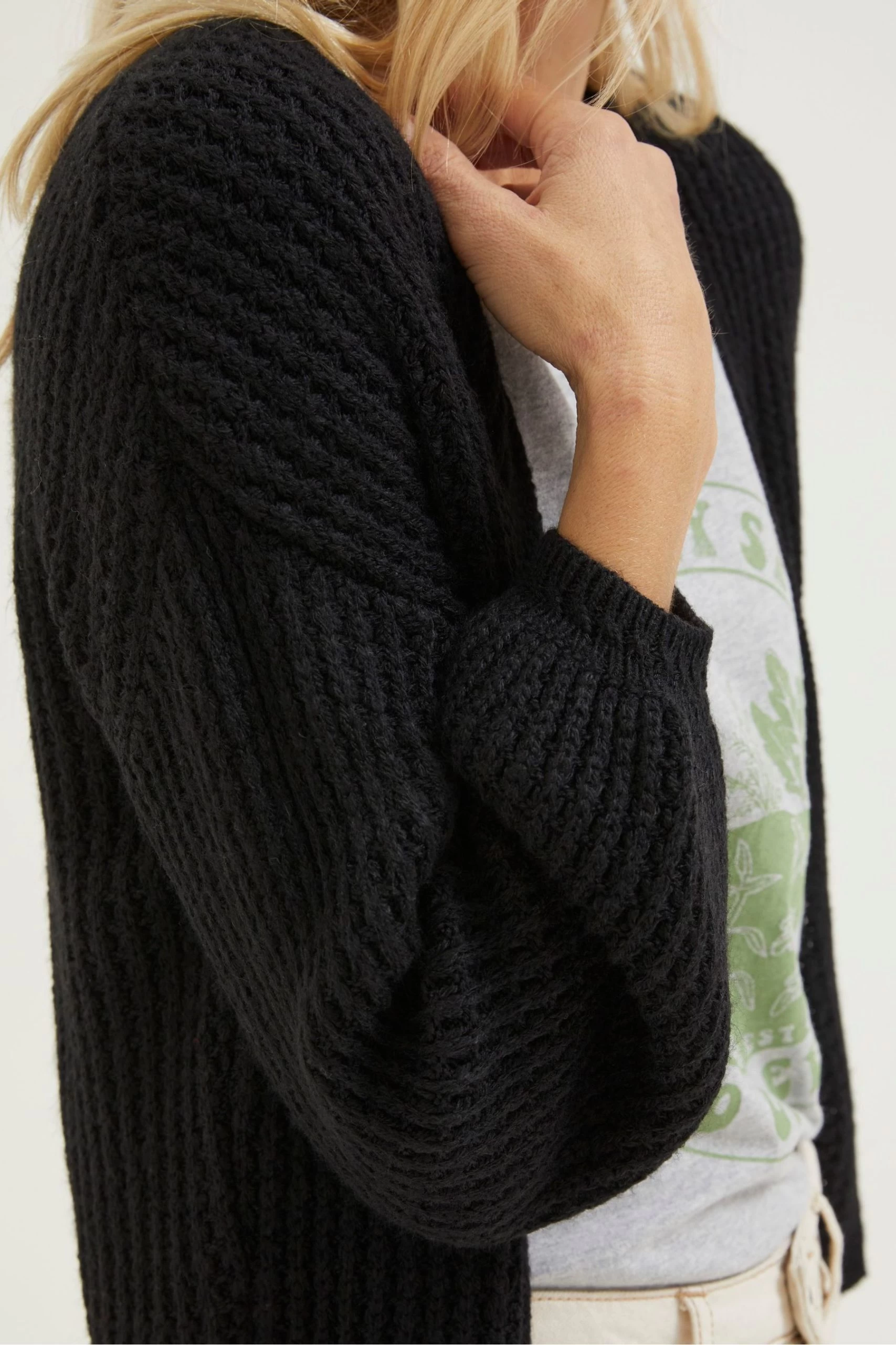 This pretty cardigan is the perfect layer for chilly days. With flattering balloon sleeves and a cool, cropped bolero shape, it is the perfect finishing touch to go with any outfit.