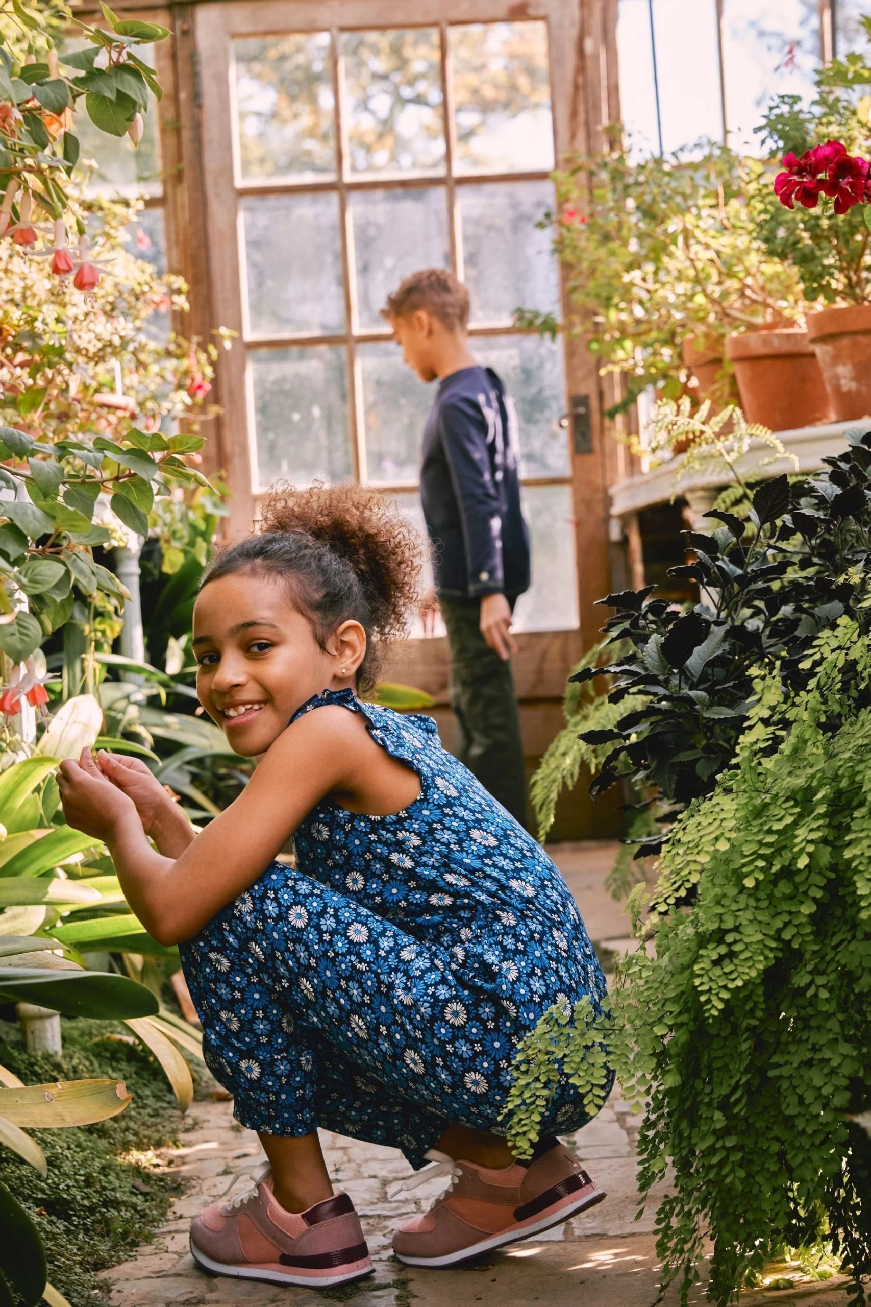 She'll love this super pretty jumpsuit! In a relaxed fit, it features an all-over floral design, short sleeves with frill shoulder detailing, a drawstring waist and button up front for easy dressing. Complete the look with her go-to knit and trainers.
