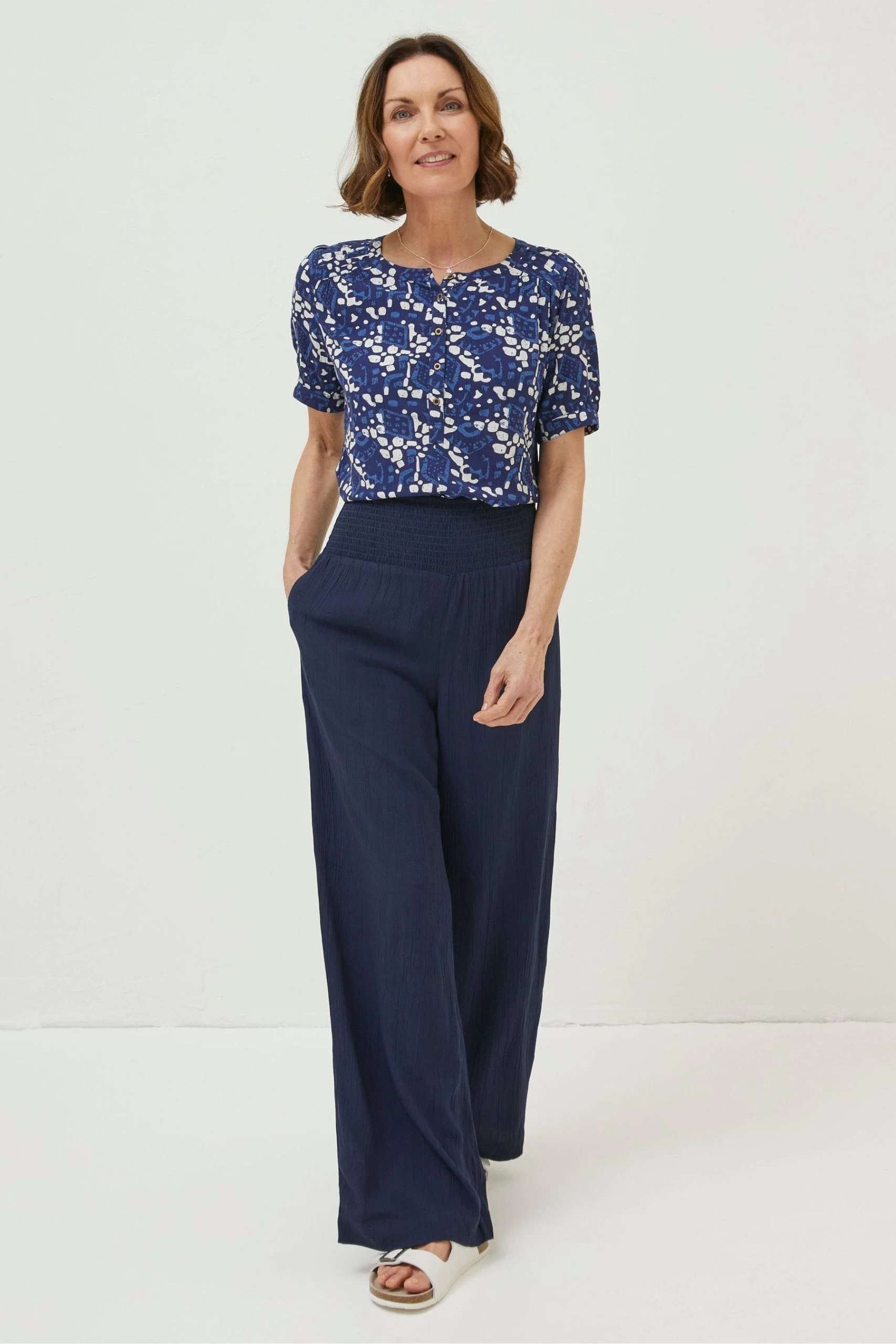 Be the first to review “FatFace Blue Shirred Plain Palazzo Trousers” Cancel reply
