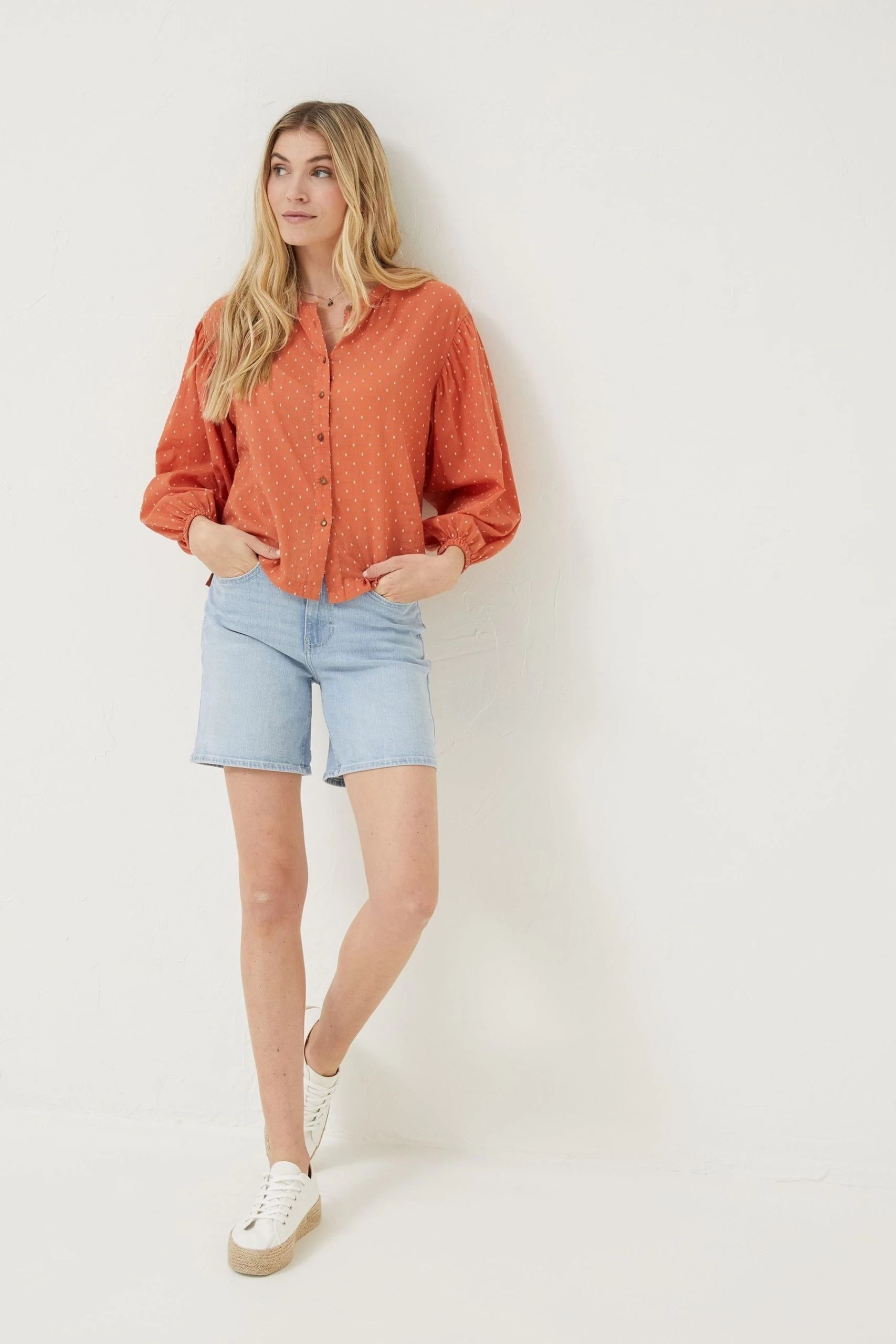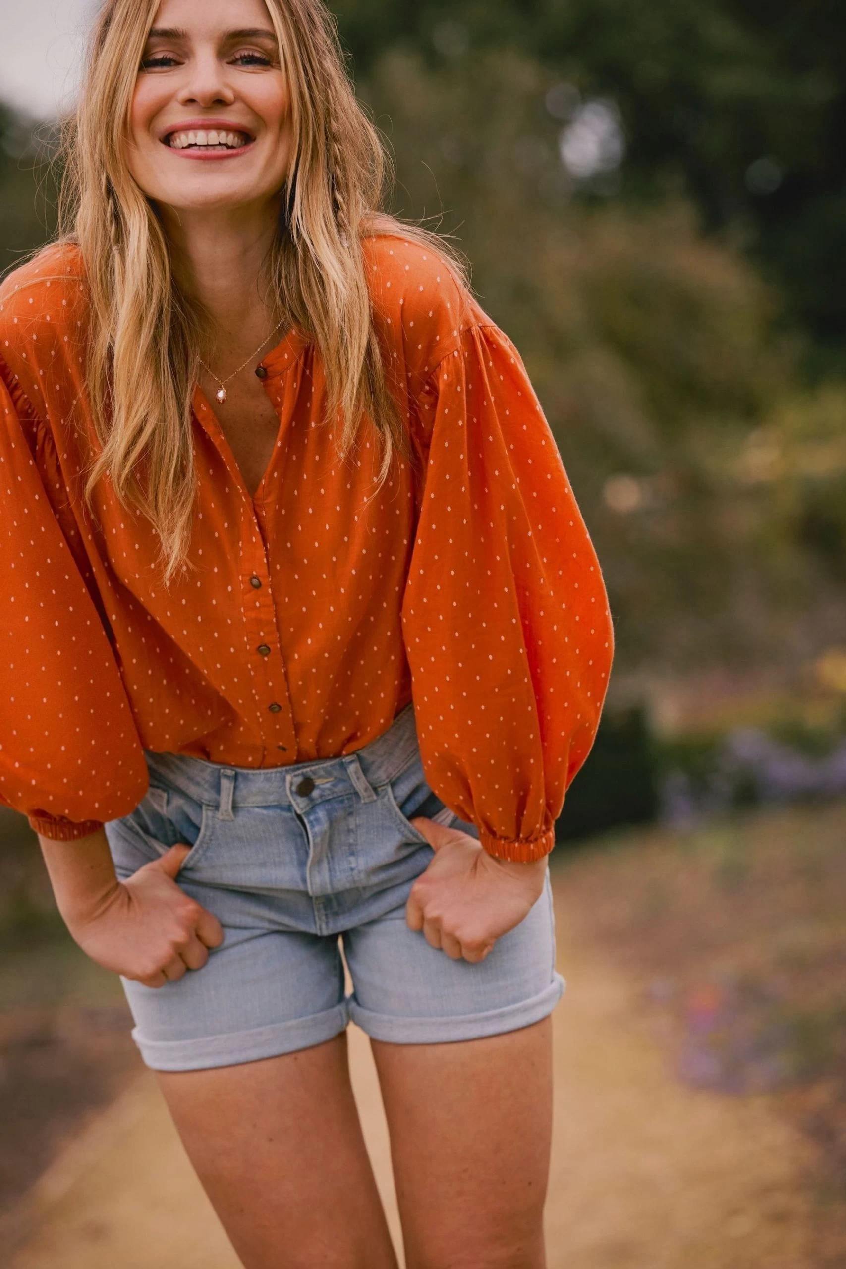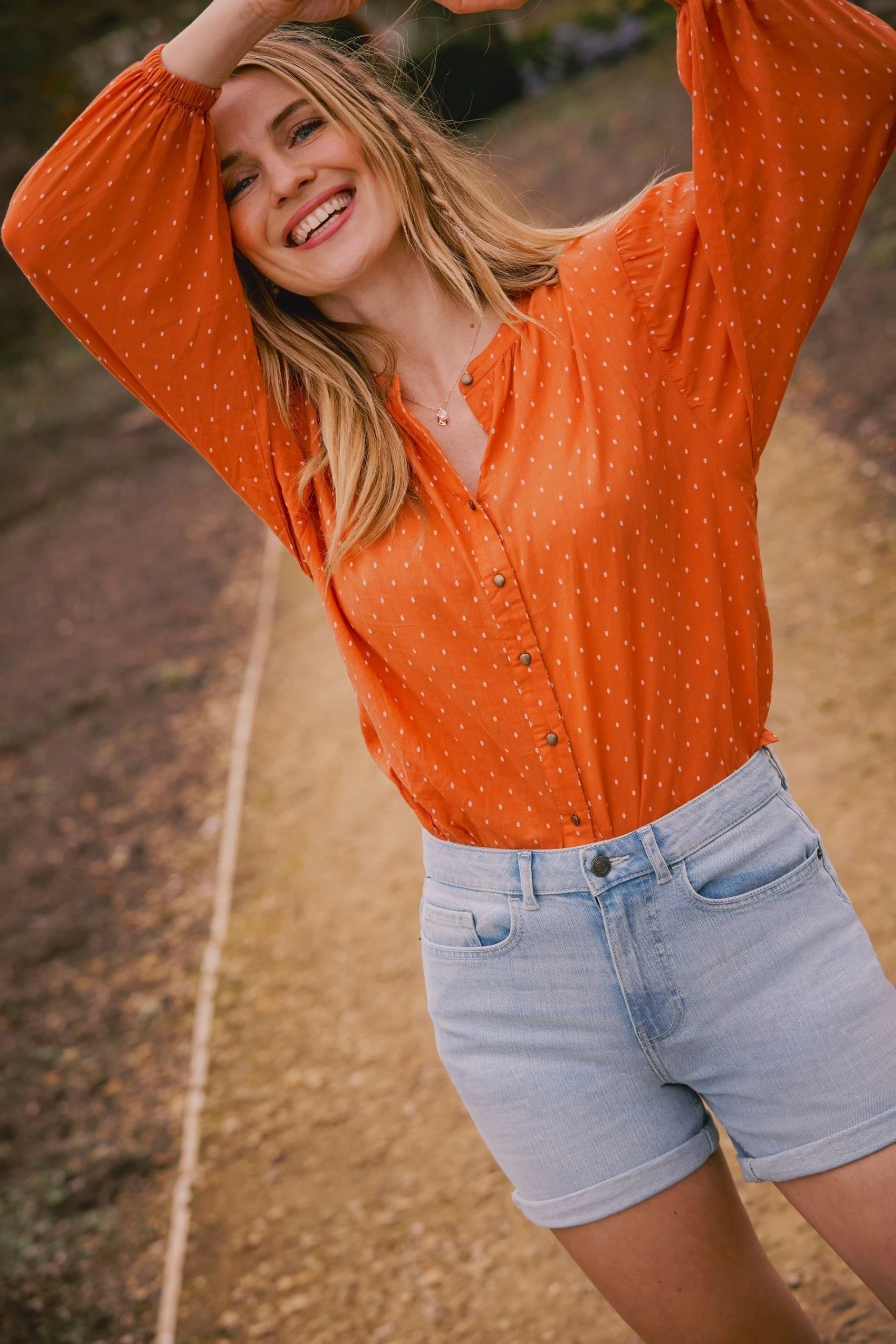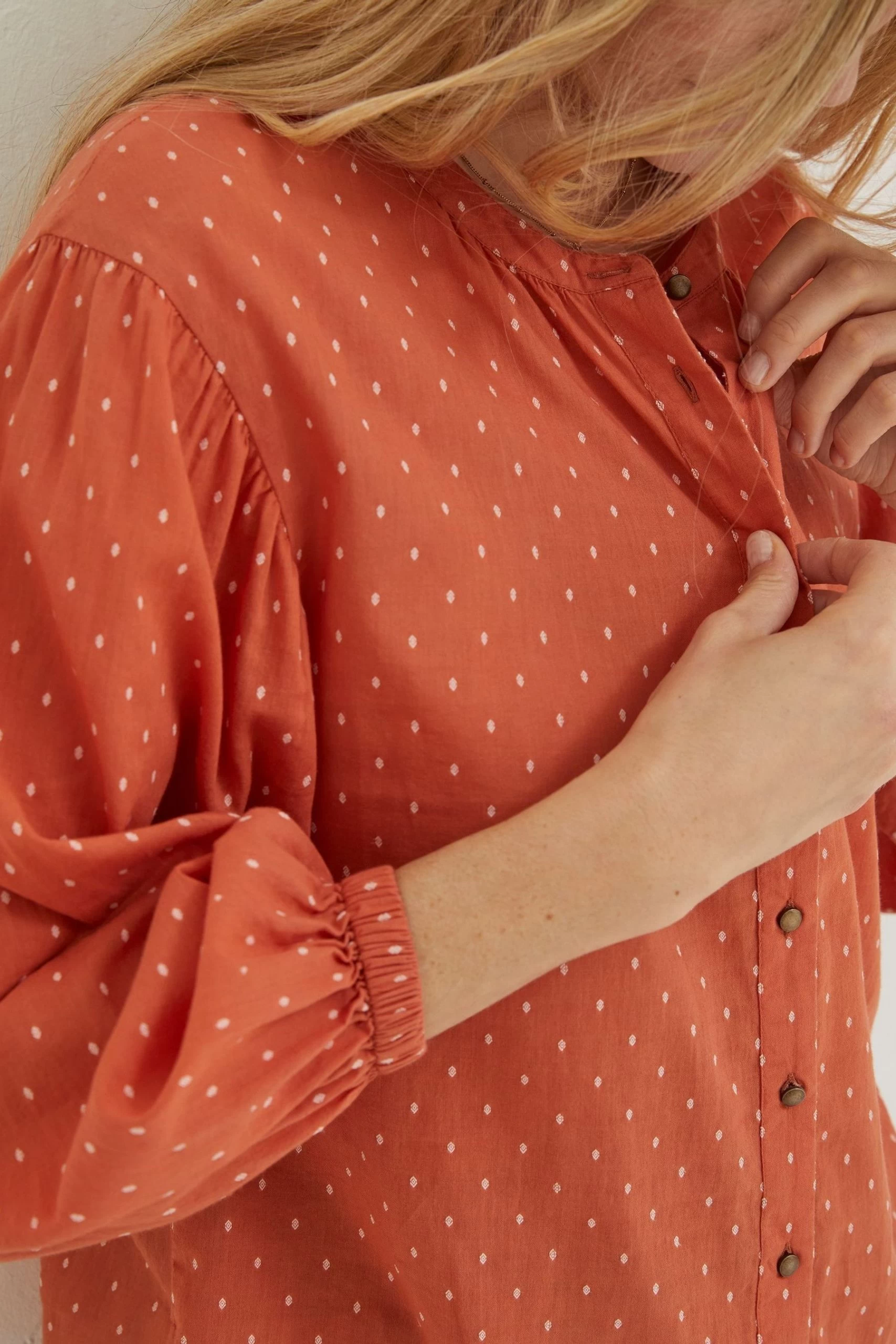 Struggling to find your next key piece for the season? Why not try our Jude blouse, it’s perfect for outfit building due its versatile design and ready for so many different ensembles. Featuring an elasticated cuff creating a gorgeous puff sleeve, subtle spotted print and in a full button down so you can wear it open, buttoned up or in a knot front design. Made in our super soft cotton blend, we’ve ensured it’s comfortable enough to take you through the seasons. Pair with your favourite denim as the temperature creeps up and in the colder months, style with a V neck jumper for a super chic look.
