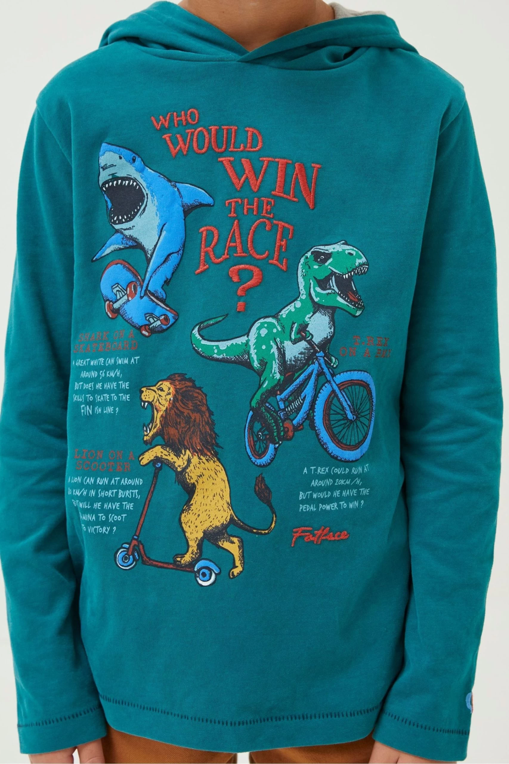 T-rex on a bike? Lion on a scooter? Definitely not shark on a skateboard! Whoever you think will win let your little one decide with our hooded jersey featuring a playful graphic to keep them guessing. We’ve made it super comfortable in our super soft cotton so they can scoot, skate or bike their way to the finish line without a hitch! We’ve finished it with an embroidered slogan for extra attention to detail so all you need to do is style them up!