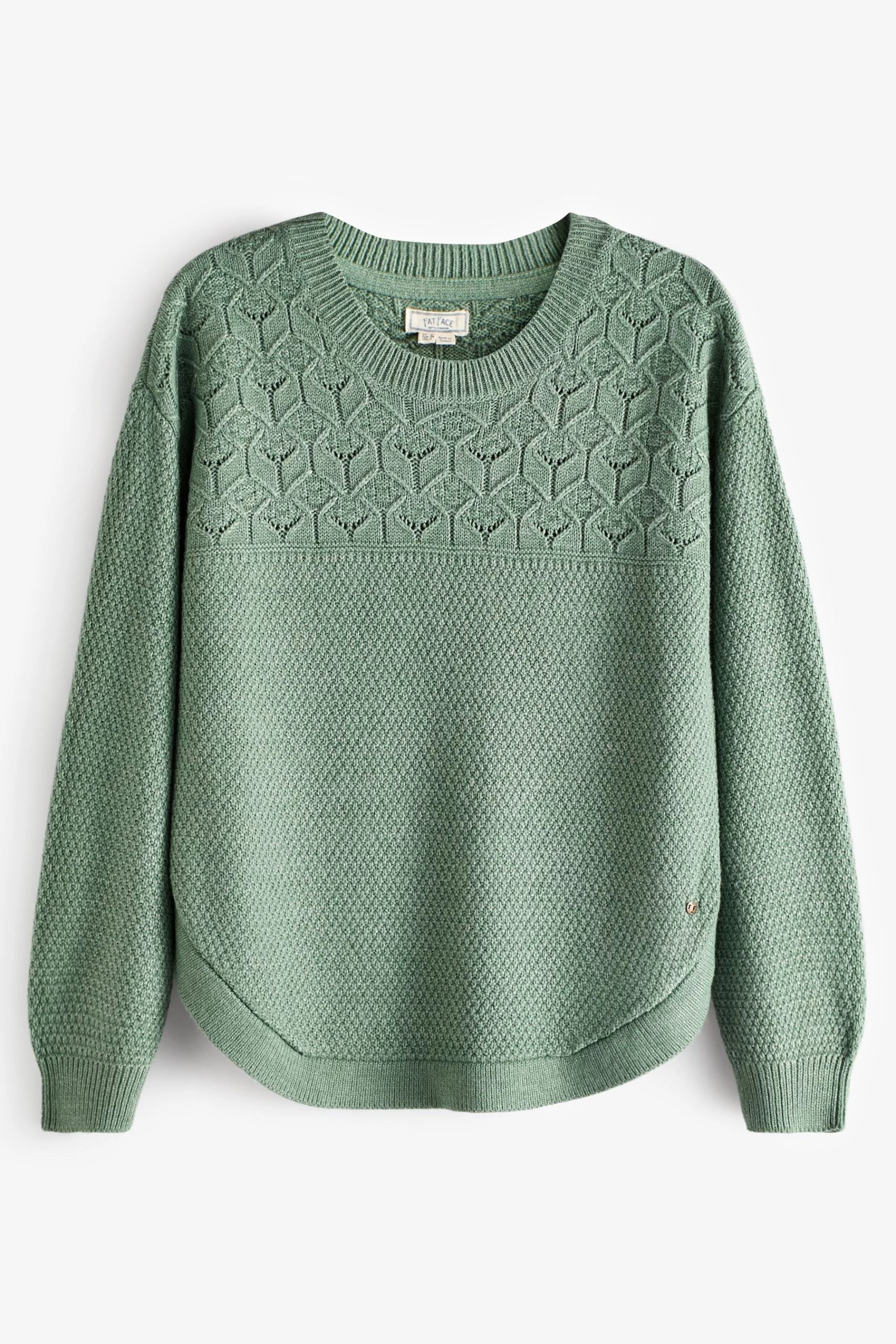 This beautifully crafted jumper is a lovely addition to your knitwear collection. Packed with pretty features, including intricate detailing, rounded hems, and ribbed cuffs to keep the chill at bay – it’s a staple piece that you’ll be wearing year after year. Pair it with your favourite jeans and boots for an effortlessly stylish casual look.