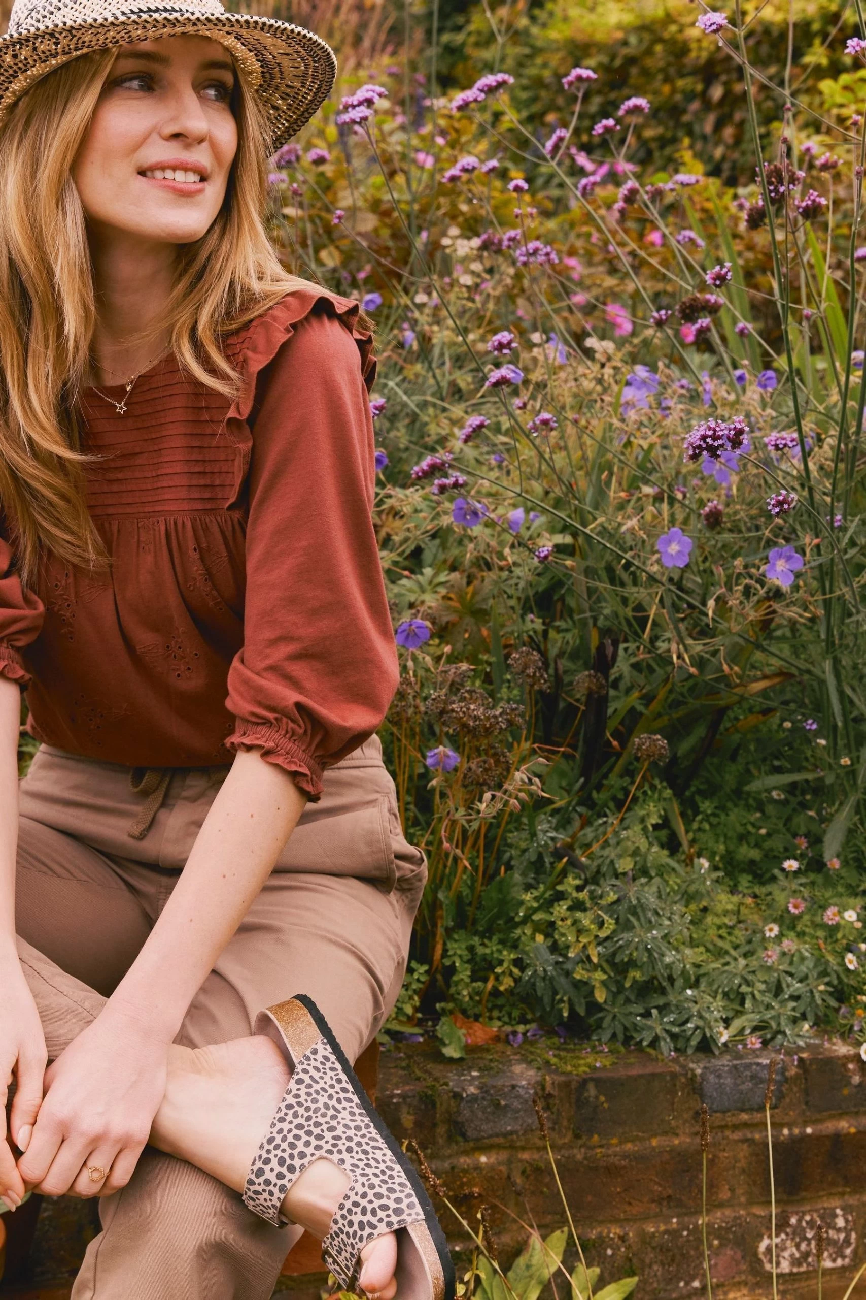Who said frills were just for blouses? Introducing the Marlo, made in beautifully soft cotton so you can get out there and find adventure without compromising on comfort. No detail’s been overlooked from the elasticated cuffs to the subtle broderie Anglaise and frill shoulders creating a powerful silhouette. Pair with your beloved jeans or forgotten denim skirt to rid away the blues!