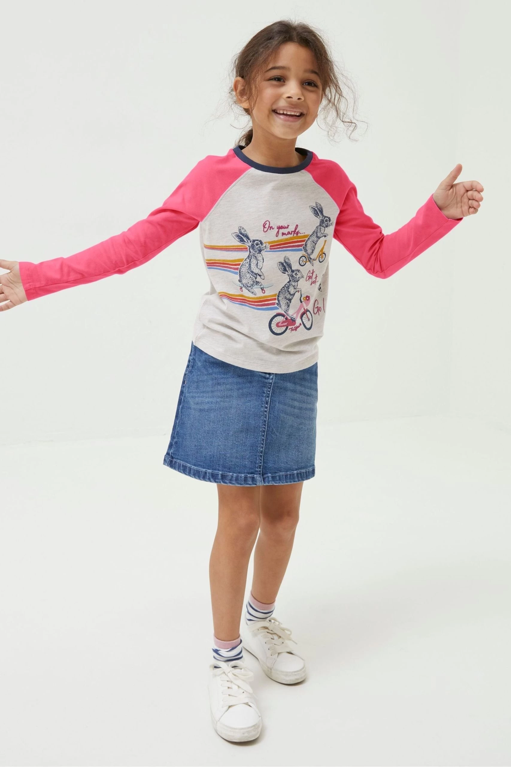 Add a spring in her step with this sweet bunny graphic t-shirt. Made from a soft and comfy cotton-polyester blend, it comes with long sleeves (perfect for cooler days), a simple crew neck and a 'On Your Marks.. Get Set.. Go!' slogan print. Style it with joggers and trainers, and layer with a jumper when the sun sets.