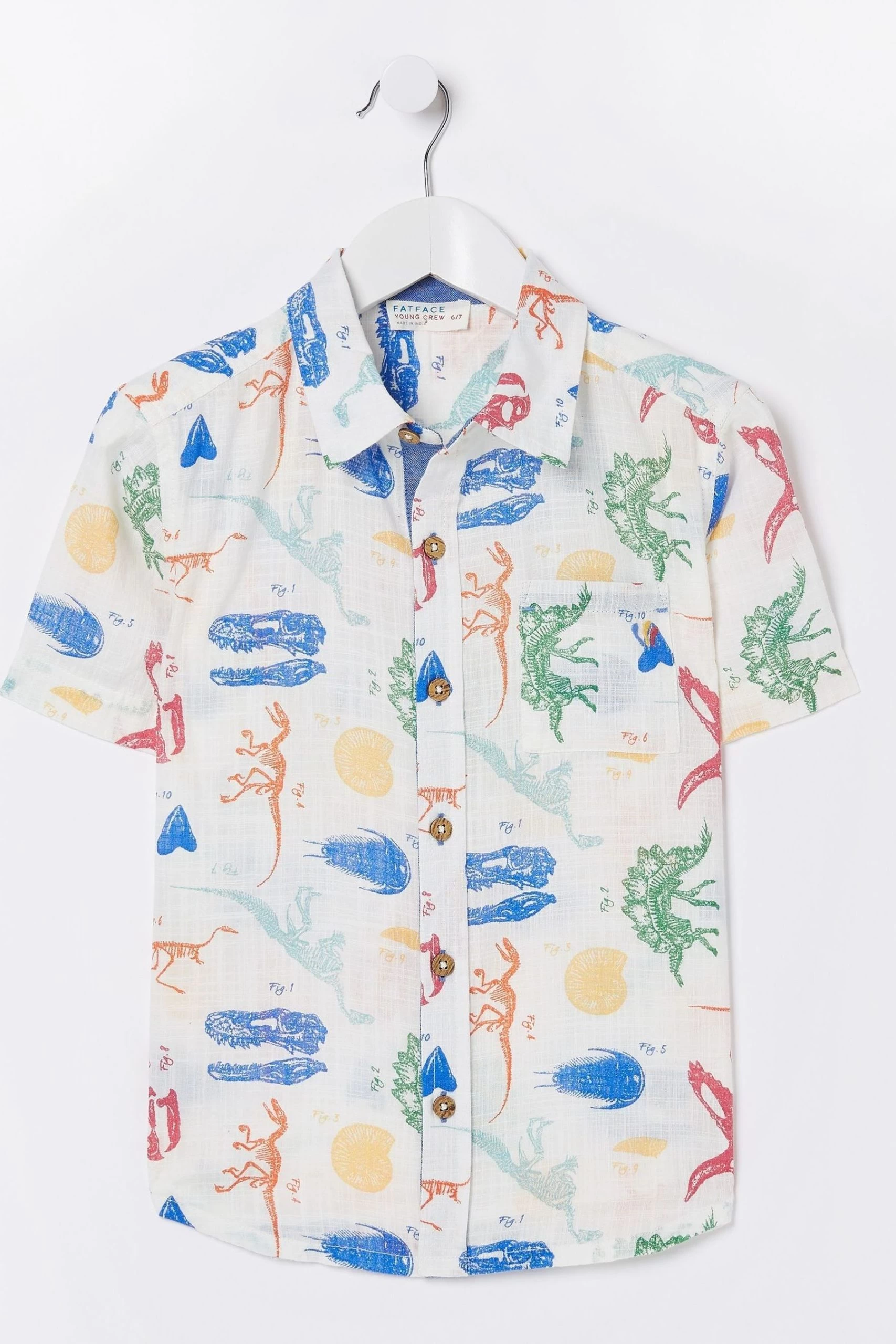 Perfect dressed up or down, this fossil print shirt will brighten up any outfit. Made from 100% supersoft and durable cotton, this comfortable shirt features short sleeves, a button up front and a colourful print. Style it with jeans and trainers, or smarten his look up with trousers and boots.