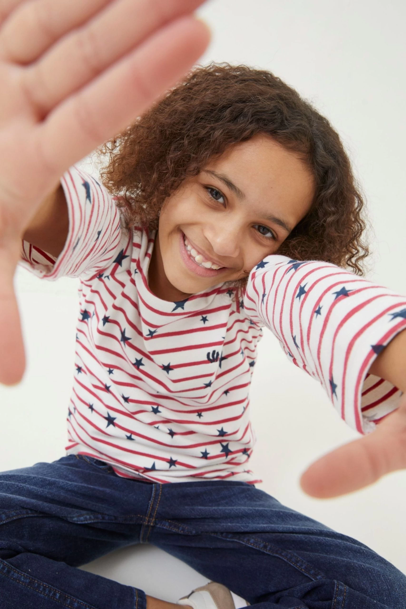 Fill out your little one's wardrobe with this Breton t-shirt. Made from cosy and comfortable cotton and in a relaxed fit, it's complete with long sleeves, a crew neck and all over star and stripe print.