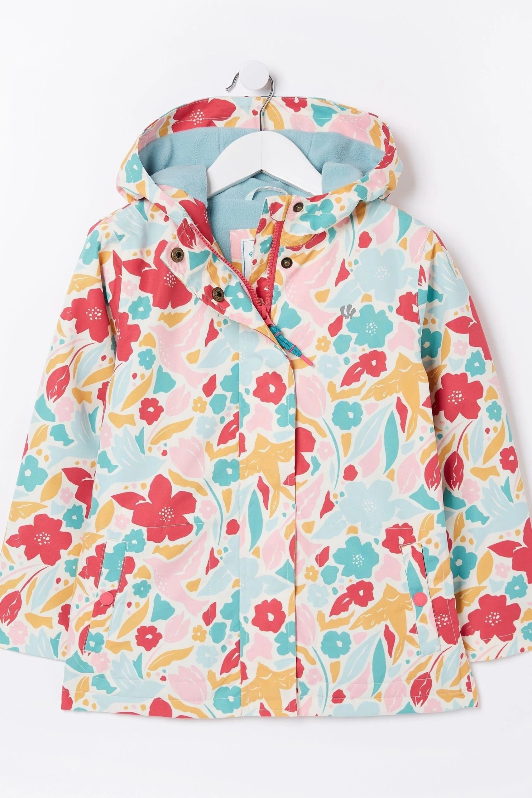 Never let rain stop play. Brave the elements with our super pretty printed waterproof jacket, complete with zip through fastening for easy dressing, button poppers for extra warmth, side pockets, and a comfy hood. She’ll love the awesome bloom print. Layer it over a simple tee, knit and jeans, and she’s good to go.