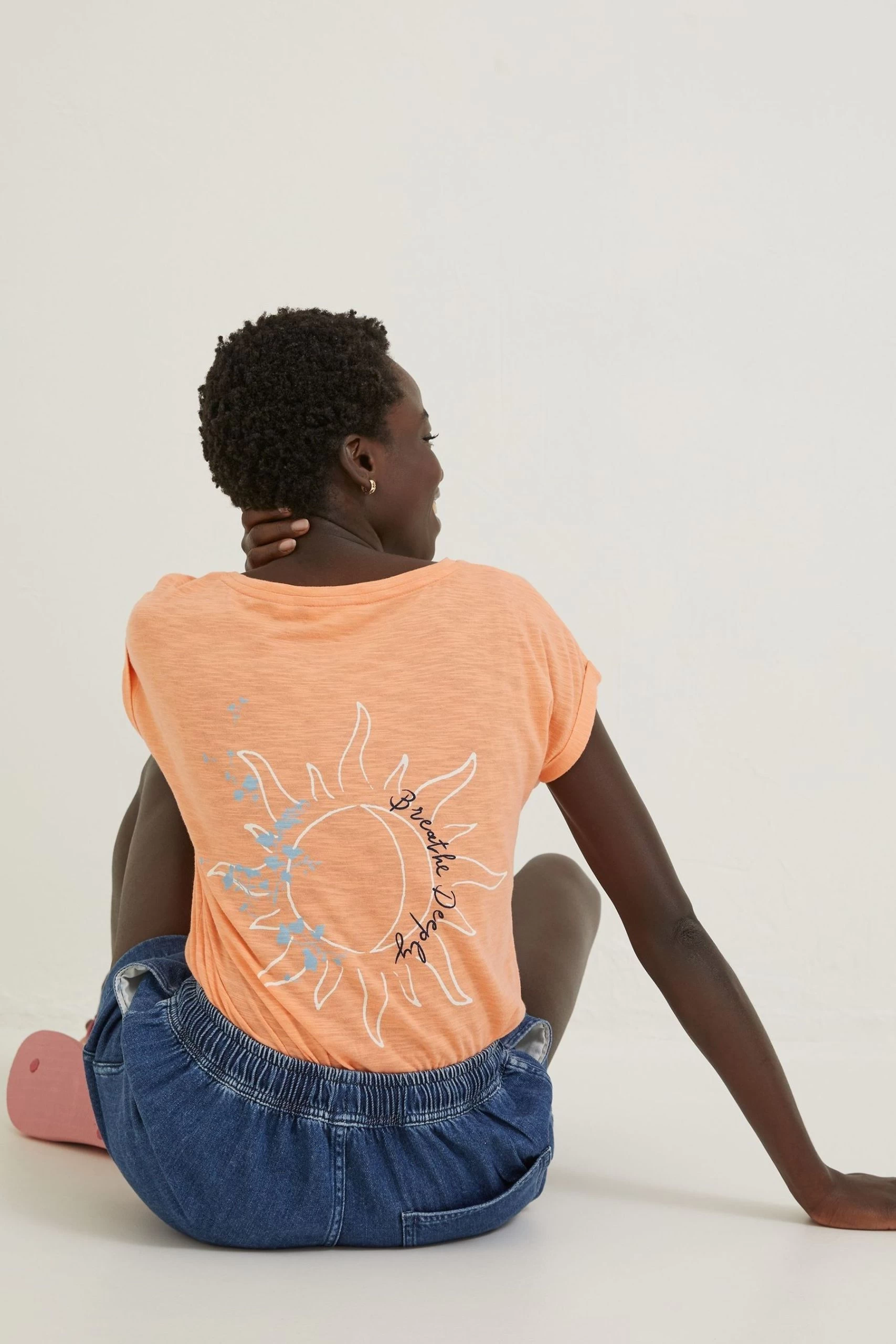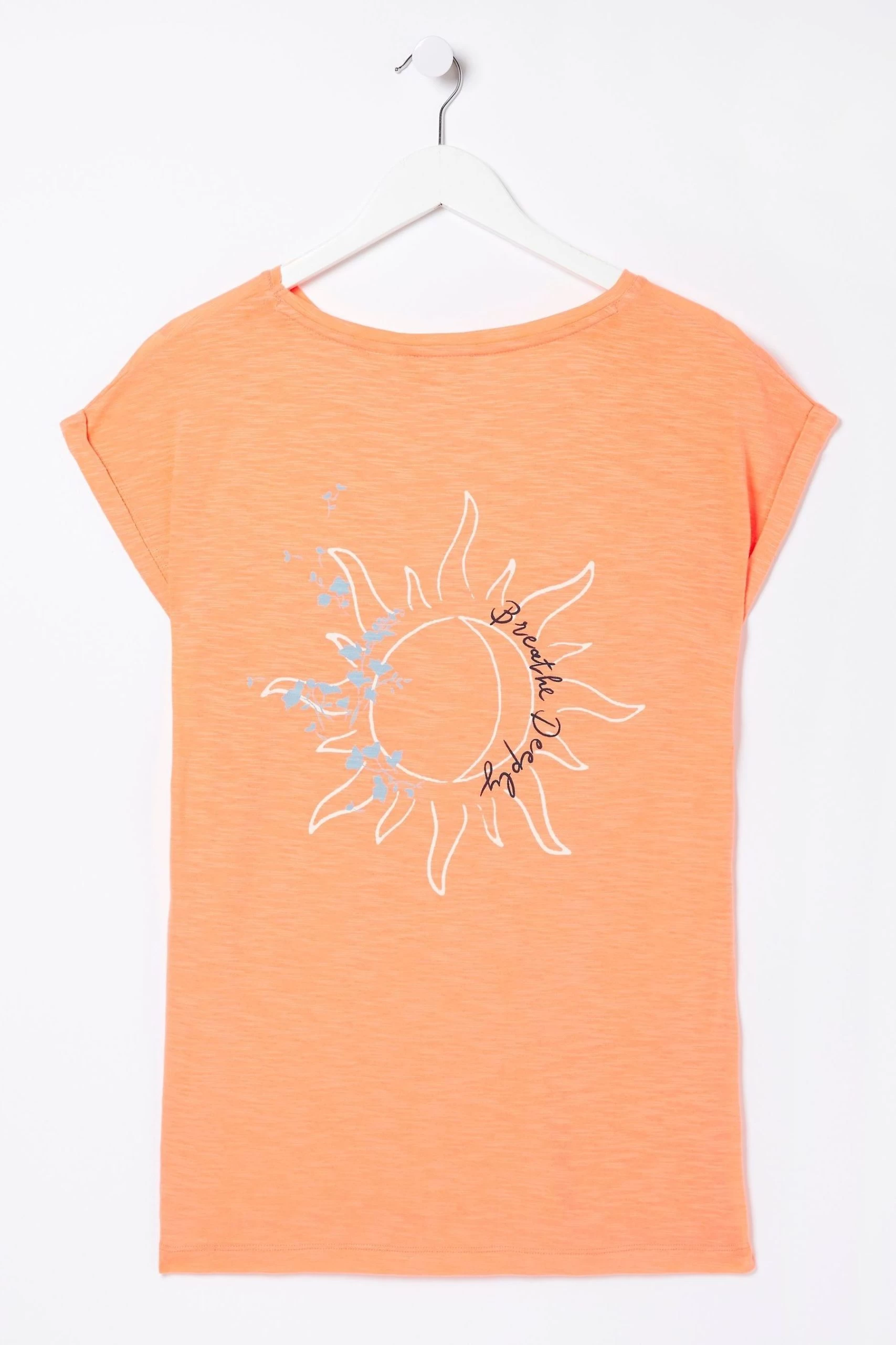 In our classic Ivy comfortable and relaxed fit and fabric, this is the perfect casual tee for layering under shirts or wearing on its own. It's complete with short sleeves, a crew neck and a pretty sun and moon graphic badge on the front and Breathe Deeply message on the back. Finish the look with jeans or shorts.
