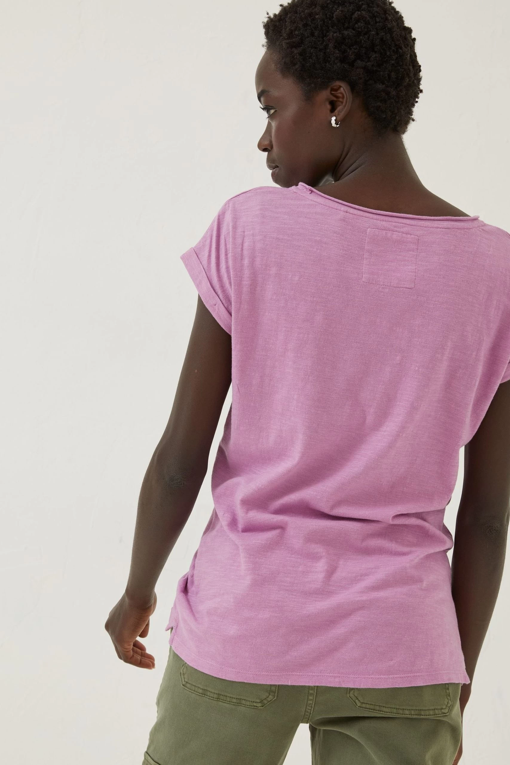 Supersoft organic cotton, subtle styling and in a great fit, this t-shirt is a perfect everyday essential. Great for warmer days thanks to its short sleeves and simple crew neck or layered underneath a jumper, this top will go with anything, jeans, a skirt or paired with your favourite knit.