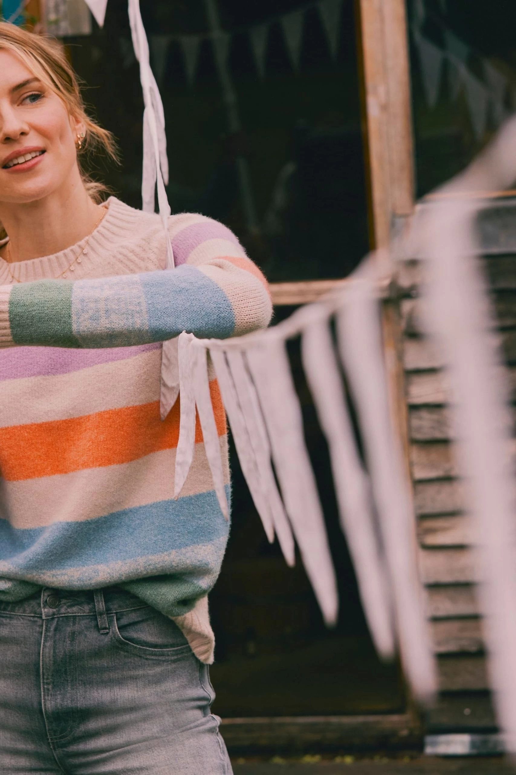 Show your colourful side in our pretty stripe jumper. Alongside its lovely design, it comes in a relaxed and comfortable fit, with a crew neck, ribbed cuffs and hem and raglan sleeves. Style it over a t-shirt with jeans and trainers.