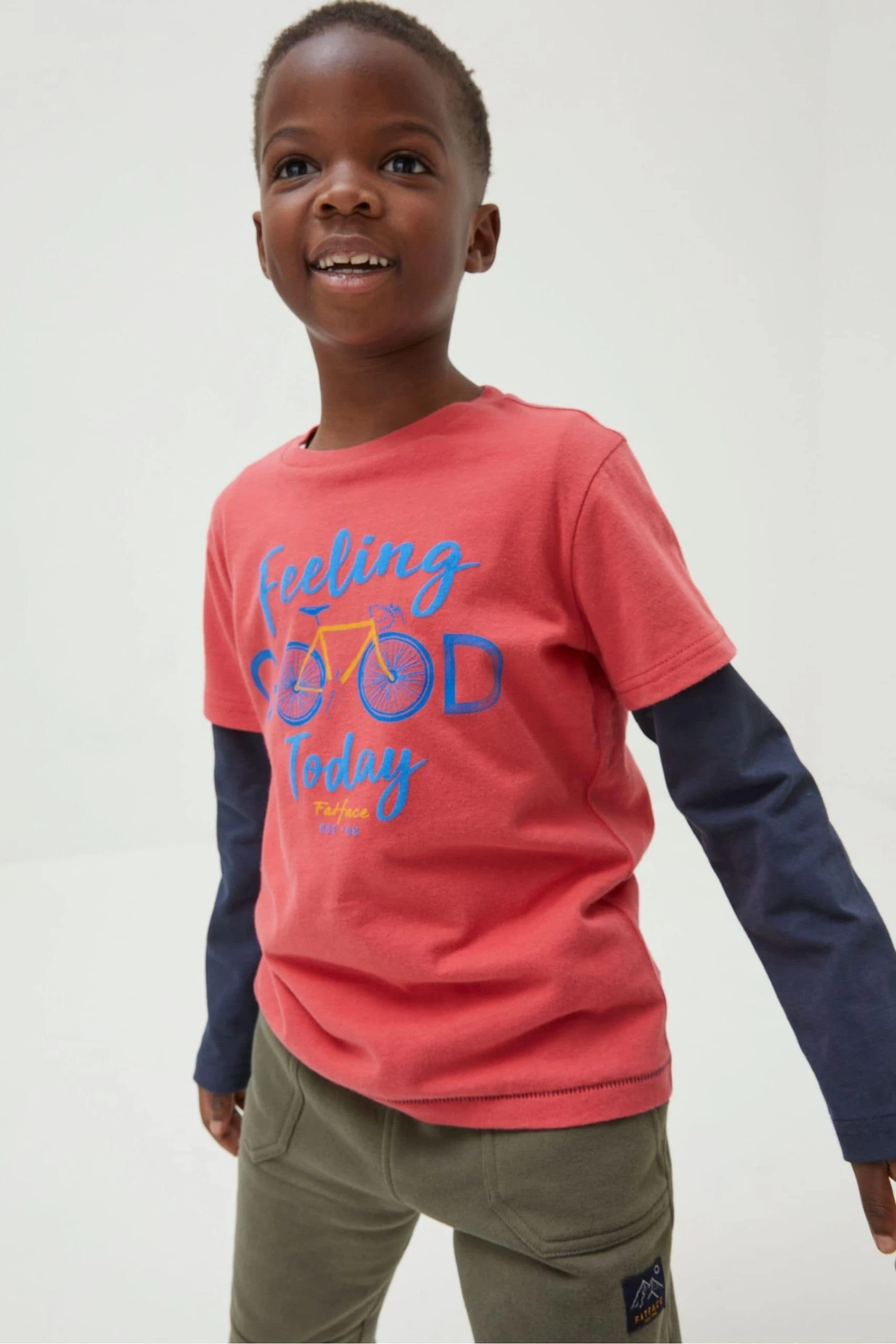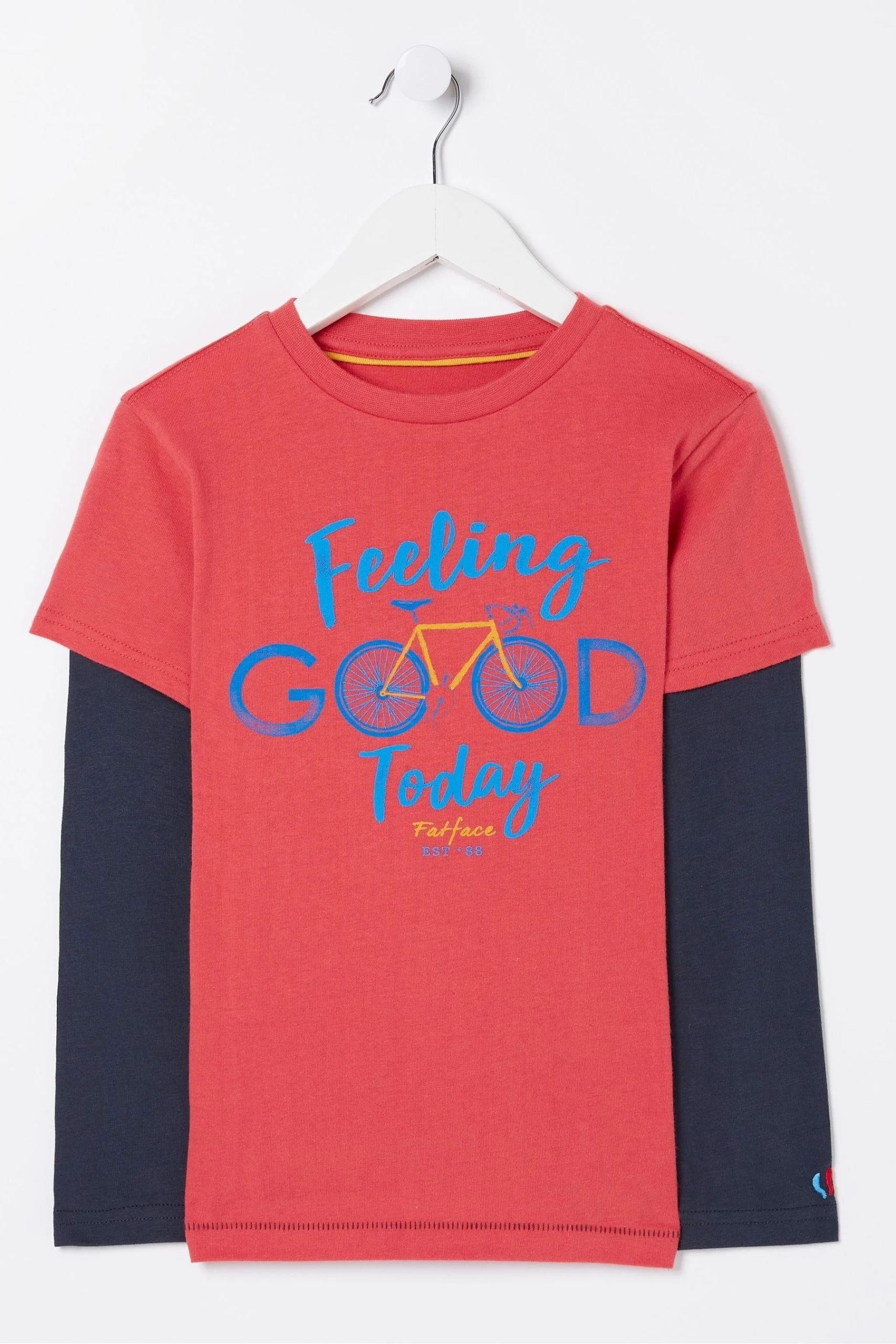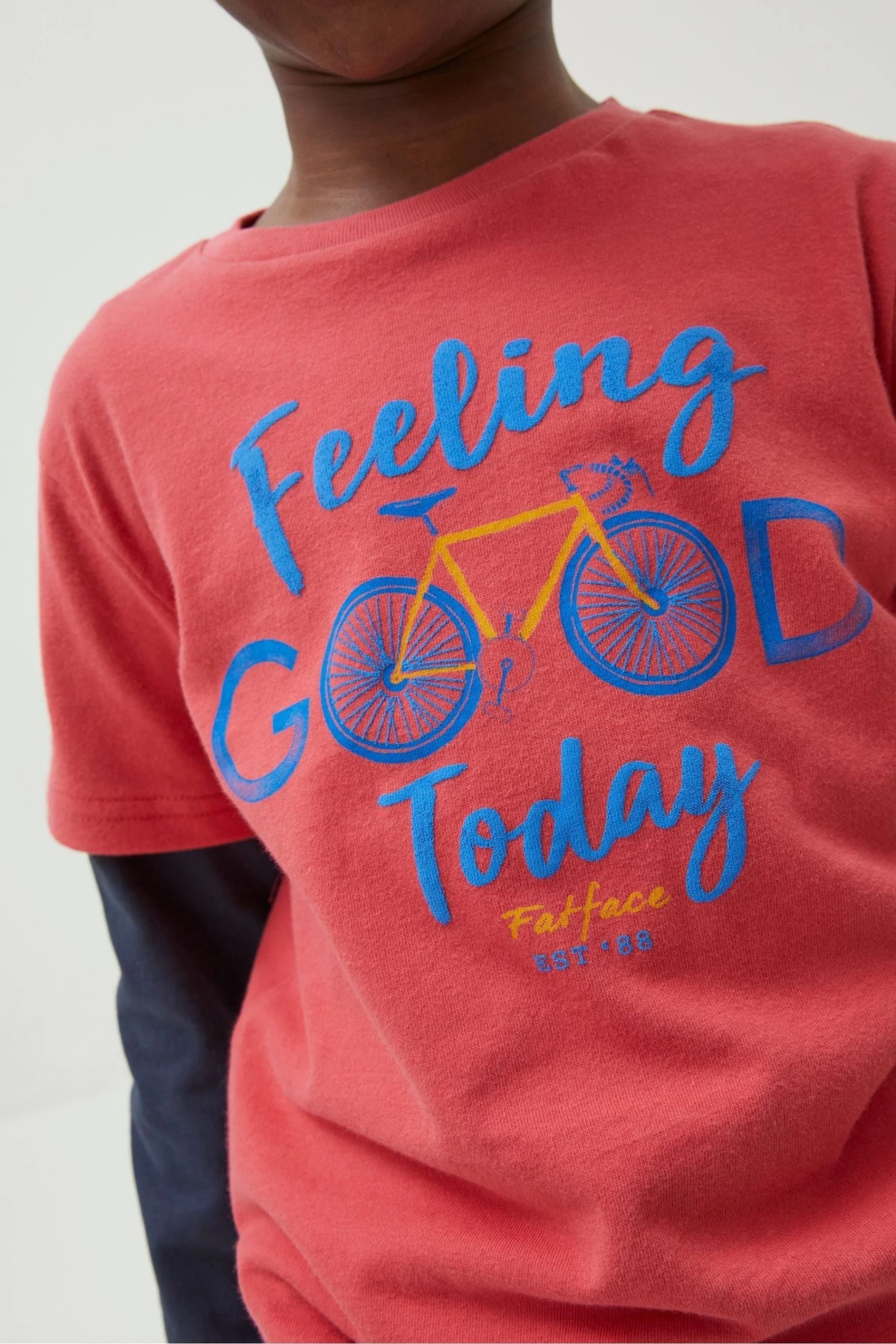Introducing the perfect t-shirt for little cycling enthusiasts. Made from 100% supersoft and comfy cotton, it features long sleeves, a crew neck and a 'Feeling Good Today' slogan print. Complete the look with trousers and trainers, and layer with a jumper on chilly days.