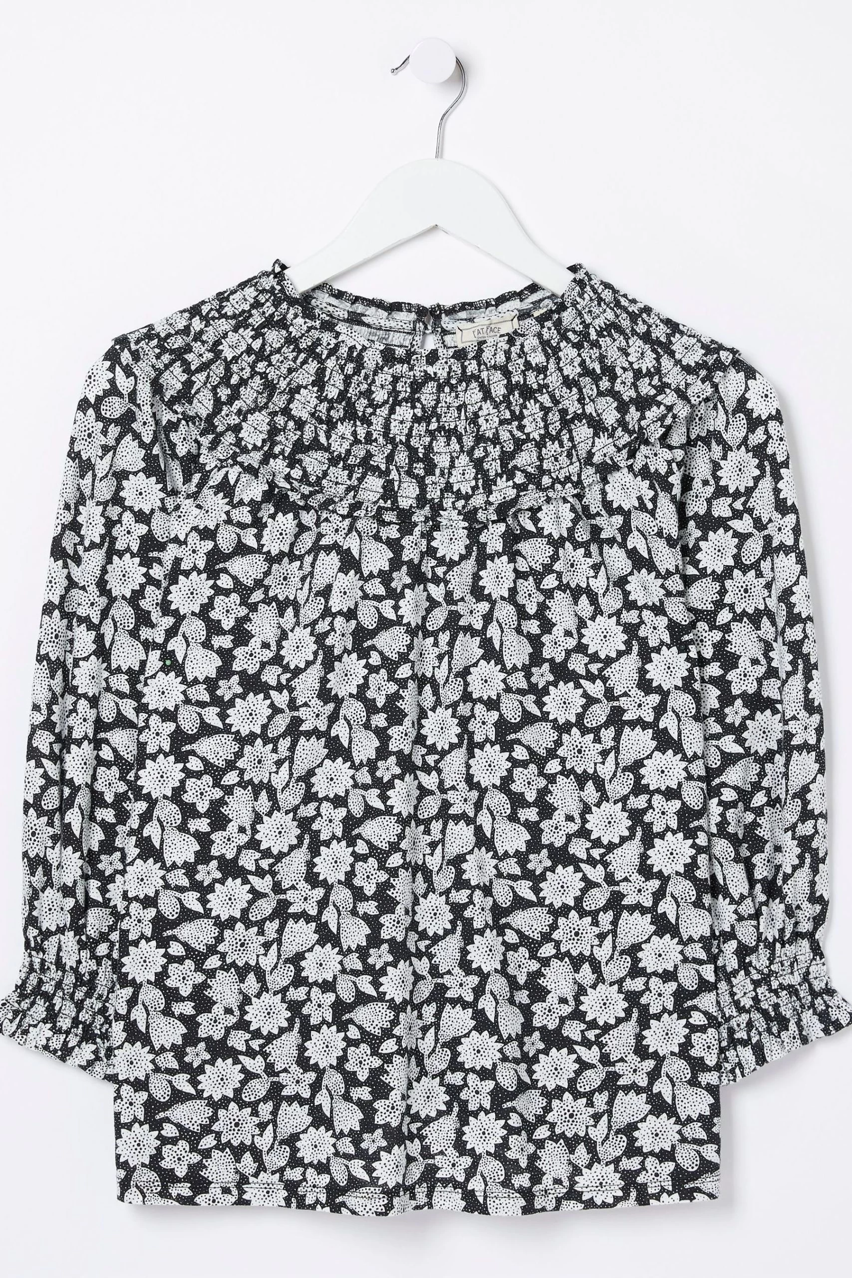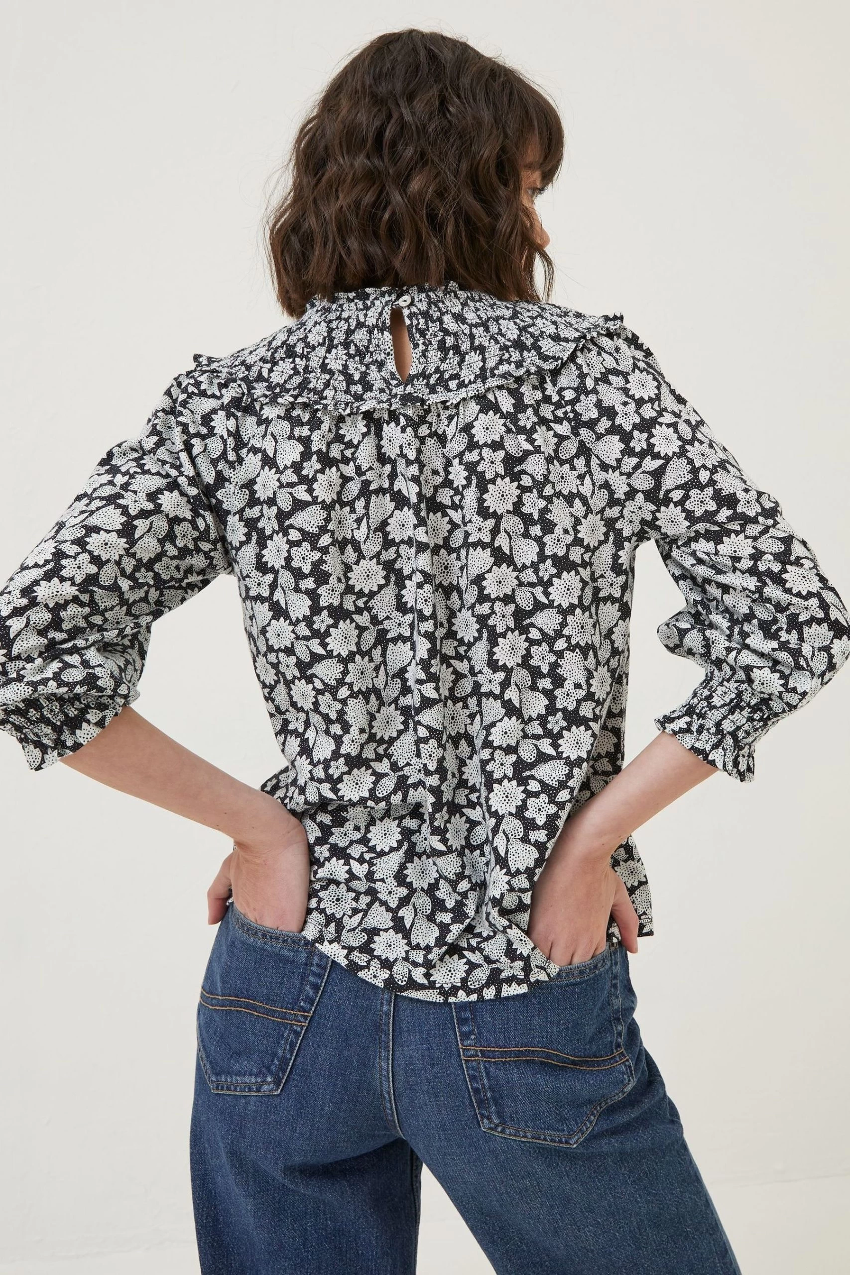 Get ready to turn heads in our super flattering smocking top. In a mono floral print, it’s the perfect statement piece your basics were looking for. Featuring a shirred neckline and cuffs for the ultimate fitted feel, button closure to make slipping in and out so much easier and finished in 100% cotton fabric, serving the utmost breathability. Tuck it into a pair of dark denim for a super easy transitional look or pair with an essential black midi skirt for an elegant day to night getup!